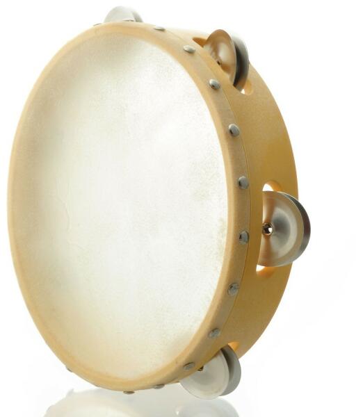 BACKTOSCHOOLTambourine in large size with natural Leather headLarge size 214mm diameterNatural Leather head5 pair of jinglesGYÁRTÓ: ANGEL...