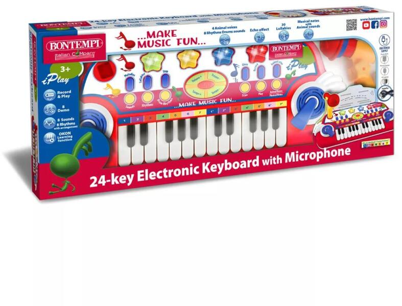 Bontempi Bontempi, 24 billentyűs játékszintetizátor mikrofonnal, piros (122932)