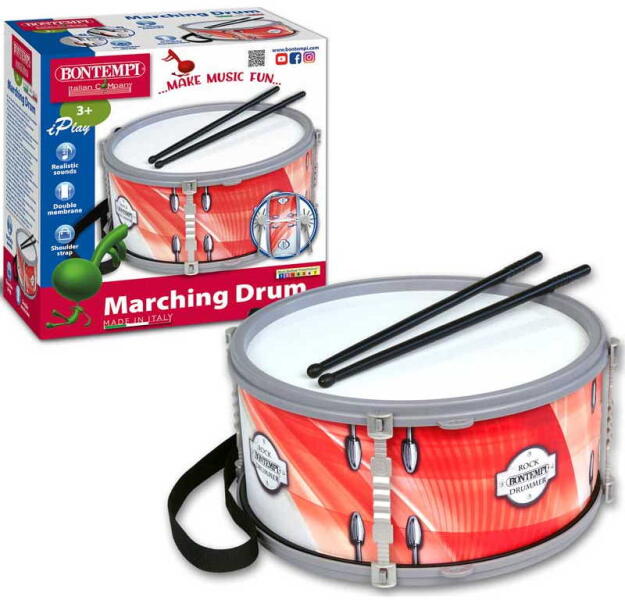 Vállszíjjal és dobverőkkel ellátott pergődob. Átmérője 250 mm