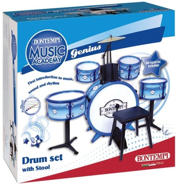Bontempi Dob szett, 5 részes Ajánlott 3-8 éves korig unisex [Cikkszám 68224]A Bontempi olasz zenés játékmárka, mely több mint nyolcvan éve ösztönzi a gyerekeket a zene és a kreativitás iránti szeretetre. A Bontempi játékhangszerei, mint például a dobkészletek, kialakításukkal és minőségükkel hozzájárulnak a gyerekek ritmusérzékének, hallásának és önkifejezésének fejlesztéséhez. A biztonságos anyagokból készült hangszerek kellő időtartamra örömet nyújtanak a kis zenészek számára. Az 5 részes Dob szett remek lehetőséget biztosít arra, hogy igazi rocksztárrá válj. A gyermekek méretéhez igazodva tervezett hangszer valósághű hangzást kínál. A csomag tartalmaz egy kényelmes széket, valamint két dobverőt, amelyekkel könnyedén megszólaltathatók a 17 cm-es oldaldobok és a 21 cm-es cintányer. Az 1 darab 23,6 cm-es pergődob és a 38,5 cm-es nagydob további izgalmat ad a játékhoz, miközben a pedálra lépés révén még autentikusabb élményt kínál. A szett csomagolásának méretei 85 x 65 x 68 cm, így könnyen tárolható. Fontos megjegyezni, hogy a hangszer használatát 3 éven aluliak számára nem ajánljuk, így minden kis zenész számára biztonságos és szórakoztató élményt nyújt. Ajánlott 3-8 éves korig unisex. Gyártói információ A Bontempi egy olasz zenés játékmárka, amely több mint 80 éve inspirálja a gyerekeket a zene szeretetére és kreativitásra.
