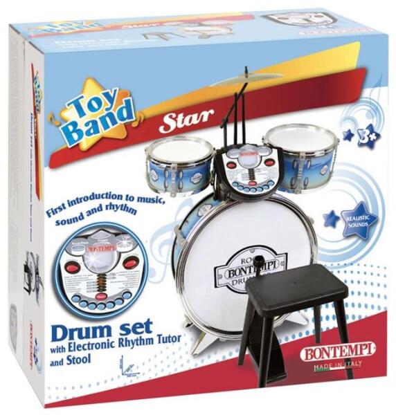 A(z) **+Dob szett dobgéppel** – Ülj a dobgéppel ellátott dob szett mögé, és verd az ütemet! Kísérd barátaid gitár szólamát, hogy a fergeteges koncertnek köszönhetően megasztárrá válj! A krómozott színű dob szett valódi hangzással segít elsajátítani az igazi, de számodra még túl nagy zeneszerszámokhoz szükséges technikákat. Ülj hát a készlethez tartozó székre, állítsd be a hangerőszabályzót, és az elektromos oktatógép útmutatását követve taposs a 38,5 cm átmérőjű basszusdob pedáljára, miközben a 2 darab dobverőddel vered a 2 darab 17 és 21 cm átmérőjű oldalsó dobot, és a 21 cm-es cintányért! Vajon mennyi időbe telik, míg megtanulod a 14 előre felvett dalt? Az oktatógép fény- és hang impulzussal mutatja be a 7 alap ritmust a 4 különböző tanulási szintnek megfelelően, tanulj hát serényen. A Dob szett dobgéppel 3 darab R6/AA típusú elemmel működik, amelyet a csomag nem tartalmaz. A termék csomagolásának méretei: 50 x 50 x 68 cm. A hangszert 3 éven aluliaknak nem ajánljuk.