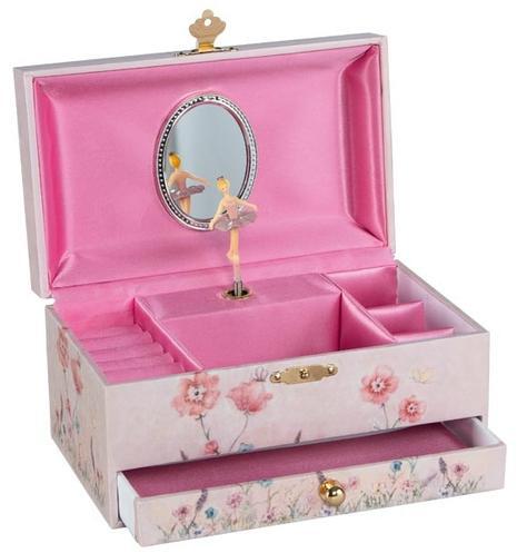 Goki ékszertartó doboz felnyitható tetővel és tükör előtt táncoló tündérrel. Külön fiókos, két részes ékszertartó dobozka.