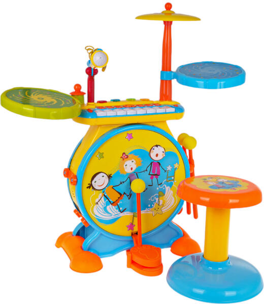 Gyermeke arról álmodik, hogy dobos legyen egy zenekarban? Akkor itt az ideje, hogy szerezz neki egy csodálatos játék dobkészletet. Ezzel a dobkészlettel gyermeke megtanulhatja a dobolás és a dalírás alapjait. Az interaktív zenei játék hang- és fényeffektusokkal 3 éves kortól gyermekek számára készült. Ha gumivégű botokkal ütöd a dobot, igazi hangszerek hangját hallhatod. Emellett a szórakoztatást a billentyűzeten előkészített zenei és ritmikai kíséret is vonzóbbá teheti. Egy másik attrakció, amely felkelti a kisgyermek figyelmét, a játék közben felvillanó csillagok. A dobokon funkcionális mikrofon és speciális praktikus bottartó is található. A játék a legjobb minőségű anyagokból készült, élénk színekkel, amelyek felkeltik a gyermek figyelmét. A játék ezzel a készlettel fejleszti a gyermek zene iránti érdeklődését és tehetségét, megtanítja a ritmusérzéket és gyakorolja a szem-kéz koordinációt.