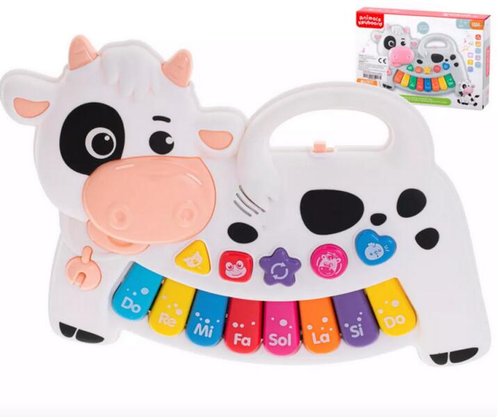 Interaktív boci formájú zongoraEz az interaktív zongora órákon át garantálja a legkisebbek zenei szórakozását. Az élénk színek, valamint a fény és hangeffektusok felkeltik a kisgyermek figyelmét. Összesen 13 színes gomb van rajta, a vidám dallamokat játszó nyolc billentyűn kívül a zongorán olyan gombok is találhatók, amelyek állatok hangját utánozzák – egy cica, egy béka, egy tehén és egy tyúk, amelyek minden dalt változatossá tesznek. A billentyűkön található feliratok segítik a gyermeket a zene alapjainak elsajátításában - megtanítják a hangok hangjait és nevét. A zongora kapcsolóval rendelkezik, amely meghosszabbítja az akkumulátor élettartamát - kikapcsolhatod amikor nem használod. A játék tökéletes minden babának, aki szeret zenélni.