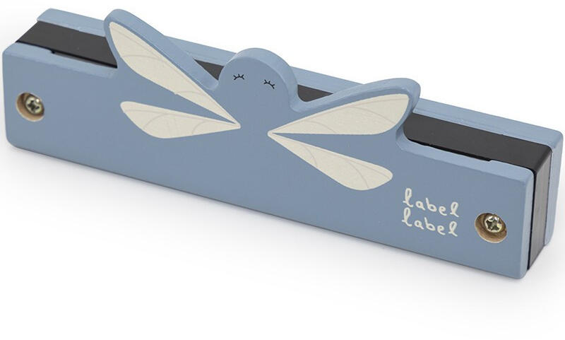 A kis zenészünk imádni fogja ennek az aranyos szitakötővel díszített kék szájharmonikának a hangját! A szájharmonika különböző lyukaira fújva különböző hangokat és hangszíneket fog tudni játszani. Bővítsd kis zenekarodat a Label Label más hangszereinek egyikével!