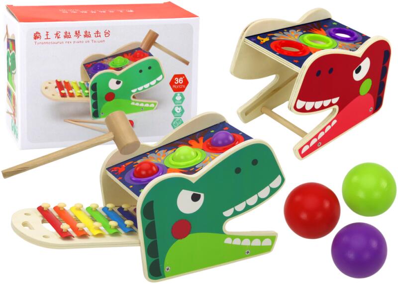 Dinoszaurusz ütőcimbalom 2 az 1-ben fa piros Dinoszaurusz alakú ütőcimbalom 2 az 1-ben! Ez a kidolgozott játék nem csak a kis dinoszauruszrajongók figyelmét fogja lekötni, hanem minden korosztály számára emlékezetes, aktivitással és oktatással teli pillanatokat fog nyújtani. Az ütőcimbalmunk tömör fából készült, így nem csak tartós, de esztétikus és biztonságos is a gyermekek számára. Kiváló választás a sok energiával rendelkező gyermekek számára, amellyel nem csak a felesleges energiájukat vezethetik le, hanem a szem-kéz koordinációjukat is fejleszthetik és erősíthetik a kézizmaikat. A golyók ütögetése úgy, hogy azok leessenek, precizitást és koncentrációt igényel a gyermektől, ami serkenti a kézügyesség és a koncentráció fejlődését. Az attrakcióknak azonban ezzel még nincs vége! A fadinoszauruszunk beépített cintányérokkal is rendelkezik, amelyeket kivehet a szájából, és külön-külön is játszhat vele. Ez nem csak változatosabbá teszi a játékot, de lehetőséget nyit arra is, hogy gyermeked megtanuljon dudán játszani, vagy akár saját, egyedi zeneműveket alkosson. Ez a kiegészítő funkció a zenén keresztül ösztönzi a felfedezést és a kreativitást. Játékunk egyesíti a fizikai aktivitás, a kreativitás és a zene elemeit, hogy átfogó játék- és fejlesztési élményt nyújtson minden gyermek számára. Ennek eredményeképpen a Cymbal Pounderünk nemcsak kedvenc játékává válik, hanem a tanulás és a készségfejlesztés eszközévé is. Dinoszaurusz méretei_ 22,5cm x 15,5cm x 12cm Pakett mérete_ 23,5cm x 16cm x 12,5cm Ez CE tanúsítvánnyal rendelkezik és megfelel az EN71 szabványnak is. Alkalmas 3 évesnél idősebb gyermekek számára. .