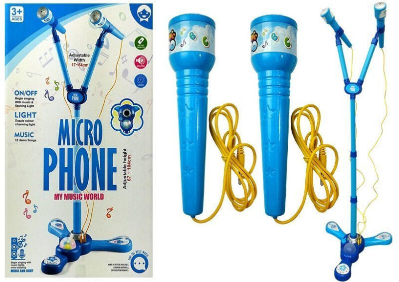 LEAN Toys Mikrofonok Karaoke Készlet Gyerekeknek Kék Elemes Állvány