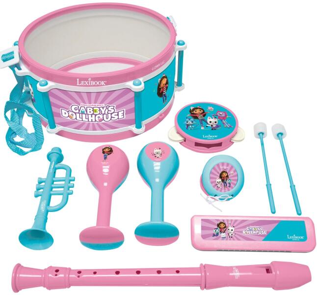 Lexibook zenélő készlet - Gabby babaháza, 7 db Bátorítsd a kicsiket, hogy fedezzék fel a zene örömét! A készlet 7 különböző hangszert tartalmaz, köztük dobokat, kasztanyettákat, dudát és egyebeket. Ismerkedj meg a különböző hangokkal és ritmusokkal, és járulj hozzá ezzel gyermeked fejlődéséhez! Az élet első éveiben járó gyermekek zenés és mozgásos játékai, ritmikus játékai, valamint egyszerű hangszereken való játéka hozzájárul a durva és finom motoros készségek fejlődéséhez. Az egyensúly gyakorlása során a stabilitás és az együttműködés fejlesztése történik a két agyfélteke között. Az emberi hang, a mozgás, a zene mind biztonságérzetet teremt a kisgyermekkorban, és hozzájárul a gyermekek kiegyensúlyozott pszichológiai fejlődéséhez. Jellemzők: 7 darabos zenei készlet Zene és ritmus ismerkedése kicsiknek Ütőhangszerek és fúvós hangszerek kombinációja Tárolóhely a fedeles dobban A durva és finom motoros készségek fejlesztése Hallási észlelés gyakorlása Dob + két ütő Egy pár maracas (rumba labda) Kasztanyetta Szájharmonika Síp (két részből áll) Trombita Kis tamburin