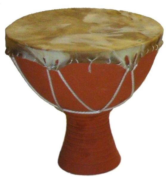 Korongozással készült cserépdob, kecskebőrrel. Erőteljes, mély tónusú hangja van...