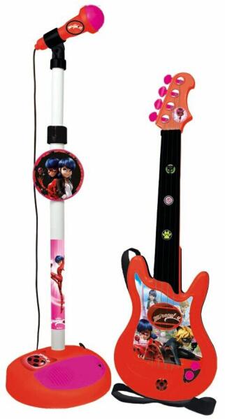 Miraculous Katicabogár és Fekete Macska gitár és mikrofon szett - Légy te a szuperhős zenész! ?? Éld át a Miraculous világát ezzel a fantasztikus gitár és mikrofon szettel! Tökéletes választás minden kis Katicabogár és Fekete Macska rajongónak, aki szeretne zenélni és szórakozni. Főbb jellemzők: ? Játék gitár: Műanyagból készült, könnyű és könnyen kezelhető. ? Mikrofon: Énekelj együtt kedvenc dalaiddal! ✨ Kreativitás fejlesztése: Serkenti a képzelőerőt és a zenei érdeklődést. ? Ritmusérzék fejlesztése: Segít a ritmus és a zeneiség elsajátításában. ? Kéz-szem koordináció fejlesztése: Javítja a finommotoros készségeket. Termék információk:Jellemző ÉrtékMéretek 34 x 18 x 72 cmSúly 698 gAjánlott életkor 3-9 évElem szükséglet 4 x LR6 AA (nem tartozék)Ez a Miraculous gitár és mikrofon szett nem csak szórakoztató, de fejleszti a gyermek zenei képességeit és kreativitását is. Ideális ajándék minden alkalomra! ?