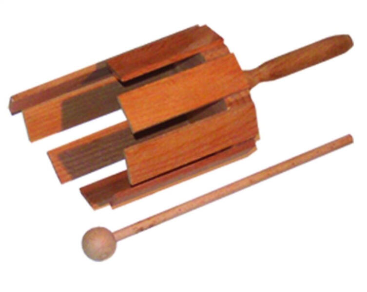 A hangszerhez adott ütővel , belül "kevergetni kell, ettől érdekes, kellemes hangot ad ki.