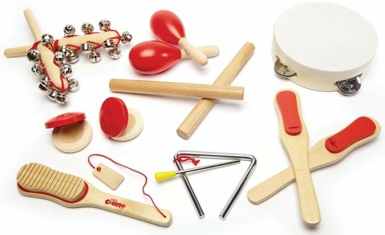 A fiatal, lelkes zenészek kedvükre dobolhatnak, csörömpölhetnek és zöröghetnek ennek a gyönyörű, 14 darabos ütős hangszerkészletnek köszönhetően. Tambura, kasztanyettek, rumbagolyók, harangok, kalapácsok, guiro és háromszög, ennyi elég egy zenekarhoz! Kiváló kreatív csoportos játékhoz és az ütőhangszerek korai megismertetéséhez. A szerszámok fából készültek, piros színű részletekkel rendelkeznek, és pont megfelelő méretűek a gyerekek kezéhez. Fejleszti a ritmusérzéket és az időzítést. Felelős forrásból származó minőségi anyagokból készült. Megfelel az európai biztonsági szabványnak. Főbb jellemzői: 14 részes készlet fejleszti a ritmusérzéket