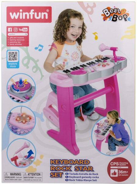 WinFun Elektronikus Zongora: 37 billentyűs zenei kaland gyerekeknek ? Ez a vidám, rózsaszín elektronikus zongora 3 éves kortól tökéletes ajándék minden kis zeneszeretőnek! Fejlessze gyermeke kreativitását és zenei érzékét ezzel a sokoldalú hangszerrel. Mit kínál a WinFun Elektronikus Zongora? 37 billentyű a kényelmes játékhoz 8 különböző hangszer (zongora, gitár, trombita, stb. ) 8 változatos ritmus 5 dobhang Tempószabályzó a ritmusok finomhangolásához DJ kaparótábla 5 szórakoztató hangeffektussal ? Levehető mikrofon az énekléshez? Rögzítés és lejátszás funkció a saját dalok elkészítéséhez és megosztásához Stabil állvány és kényelmes szék a kényelmes játékhoz ? Színes fények a még nagyobb szórakozásért ✨ A WinFun Elektronikus Zongora tökéletes választás, mert: Serkenti a kreativitást és a zenei érzéket Fejleszti a ritmusérzéket és az improvizációs képességet Szórakoztató és interaktív játék Könnyen hordozható a beépített fogantyúnak köszönhetően Tartós és biztonságos anyagokból készült Lepje meg gyermekét ezzel a fantasztikus zenei játékkal, és engedje szabadjára a zenei tehetségét!
