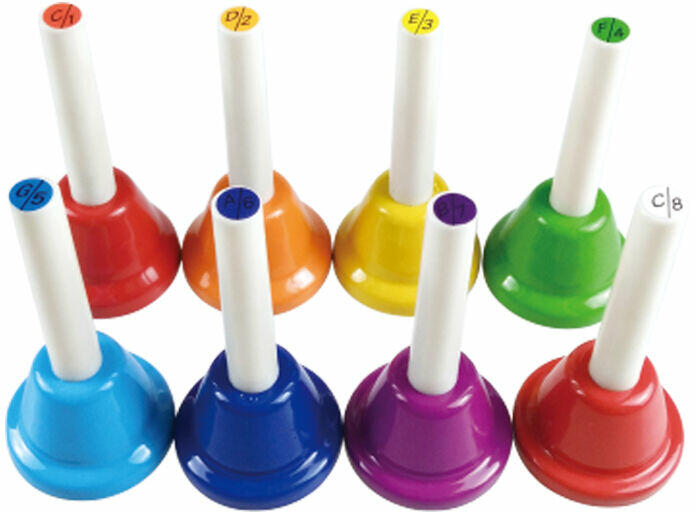 A készlet tartalma 8 db csengő, melyek mind különböző hangot adnak ki. A csengőket hagyományos módon lehet megszólaltatni, rázni kell őket. A harangok anyaga fém, melyek műanyag harangnyelvvel és nyéllel rendelkeznek. Hangterjedelem: C1-C8. Mérete: 10,5 x 5 cm.
