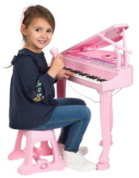 Csodálatos rózsaszín 37 gombos zongora mikrofonnal a kis hercegnőknek. A zongora több demo zenét játszik, többféle hangszer hangján tud megszólalni. A zene közben fények is szórakoztatnak. A zongorához MP3 lejátszó vagy okostelefon is csatlakoztath...
